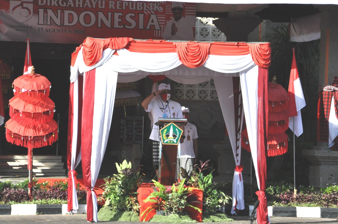 Upacara Peringatan Hari Plokamasi Kemerdekaan Republik Indonesia ke-75 tahun 2020 di Kabupaten Tabanan diselenggarakan secara sederhana di halaman depan Kantor Bupati Tabanan, Senin (17/8).