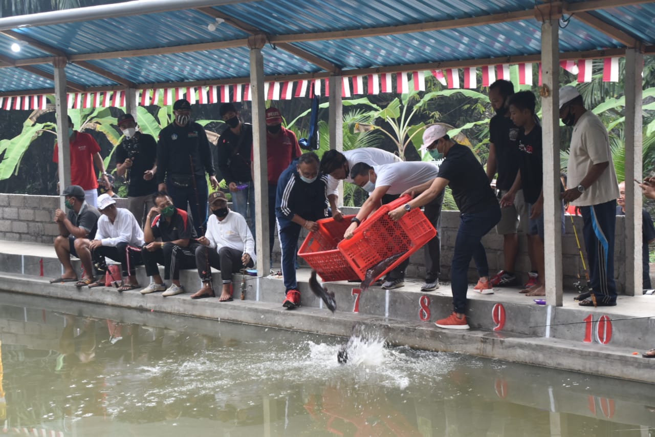 saat Pandemi Covid-19, Wakil Bupati Badung I Ketut Suiasa membuka Lomba Mancing bagi para Pemangku dan Prajuru Desa Adat Mengwi  di wilayah Kolam Pancing Taman Sari, Minggu (16/8). Lomba mancing yang ditandai dengan pelepasan Ikan Lele dan diberikan kehormatan mincing tersebut juga dihadiri oleh anggota DPRD Badung dapil Mengwi I Nyoman Satria, Camat Mengwi I Nyoman Suhartana dan para Tokoh Desa Mengwi.