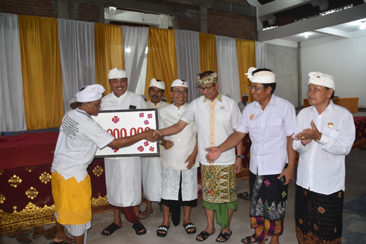 Wabup Suiasa menghadiri rangkaian Karya Ngenteg Linggih, Mapadususan Agung, Menawa Ratna, Mapeselang, Mapadanan, Medasar Tawur Balik Sumpah Utama di Pura Dalem Penataran Sari, Desa Punggul, Sabtu (30/11). Â