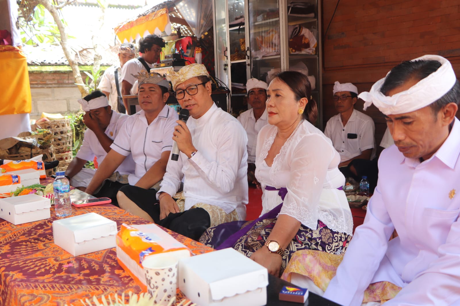 Wabup. Suiasa menyampaikan terima kasih kepada krama yang telah melaksanakan swadharma utama membangun yadnya kehadapan Ida Bhatara. “Atas nama pribadi dan Pemkab Badung, saya merasa bahagia dan berterima kasih, karena semeton krama telah berhasil melaksanakan yadnya utama. Kami sebagai pemerintah berkesempatan hadir ikut ngrastitiang, mendoakan agar yadnya ini dapat berjalan dengan baik sesuai harapan krama. Kami merasa bangga karena krama disini telah mampu membayar hutang niskala yaitu dengan meyadnya,” jelasnya seraya berharap melalui yadnya ini, krama semua diberikan kerahayuan dan keselamatan.