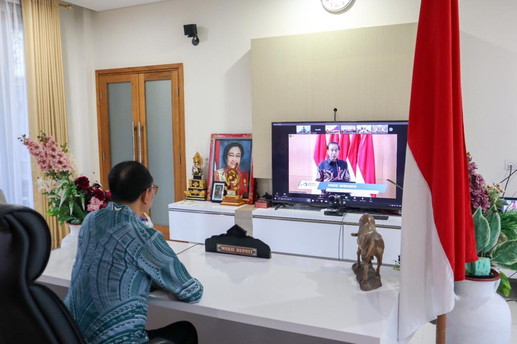 Wakil Bupati Badung I Ketut Suiasa didampingi oleh Inspektur Luh Suryaniti menghadiri Rakornas Pengawasan Intern Pemerintah Tahun 2023 secara virtual bertempat di Rumah Jabatan Wakil Bupati, Puspem Badung, Rabu (14/6). Rakor dengan tema “Kawal Produktivitas Untuk Transformasi Ekonomi” ini dibuka langsung Presiden Republik Indonesia Joko Widodo dan diikuti Panglima TNI Yudo Margono, Kapolri Listyo Sigit Prabowo, Kepala BPK Isma Yatun, Kepala BPKP Muhammad Yusuf Ateh, Ketua KPK Firli Bahuri, para Menteri Kabinet Indonesia Maju, Jaksa Agung Burhanuddin, Gubernur seluruh Indonesia, Bupati/Walikota seluruh Indonesia serta para undangan.
