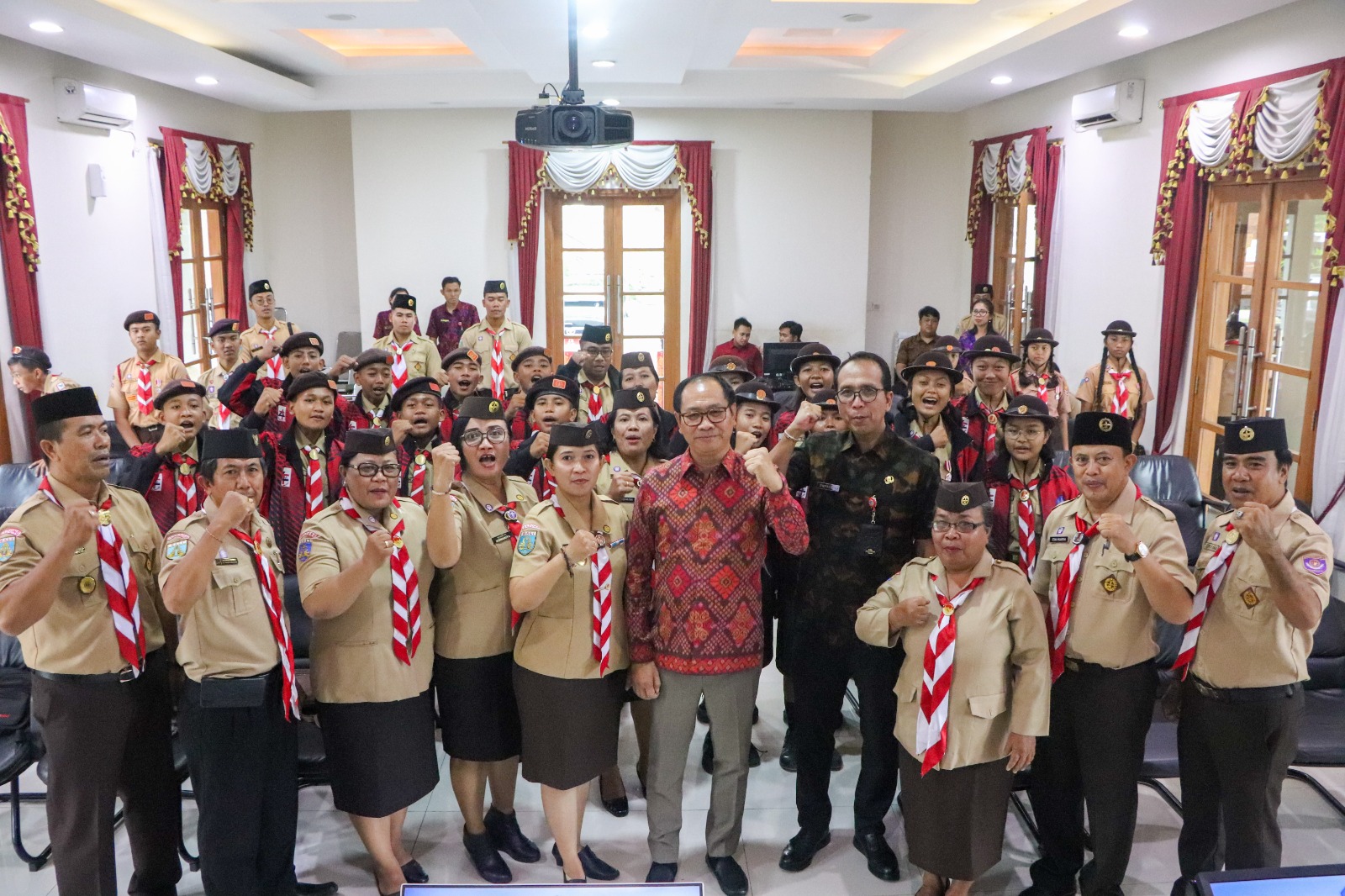 Wakil Bupati Badung I Ketut Suiasa selaku Ketua Gerakan Pramuka Kwartir Cabang (Kwarcab) Badung didampingi Kadisdikpora Badung I Gusti Made Dwipayana selaku Ketua Harian Gerakan Pramuka Kwarcab Badung, secara resmi melepas Kontingen Lomba Tingkat Regu Pramuka Penggalang Empat (LT-4) Kwarcab Badung, di Ruang Rapat Rumah Jabatan Wakil Bupati, Puspem Badung, Selasa (28/3). Pelepasan ditandai penyematan tanda ikut serta kegiatan (tiska) kepada peserta lomba. Hadir, Ketua Kwartir Ranting se-Badung, Ketua Majelis Pembimbing Gugus Depan (Mabigus) peserta LT-4, pelatih, pembina pendamping serta peserta lomba.