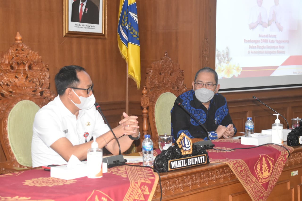 Wakil Bupati Badung I Ketut Suiasa menerima rombongan DPRD Kota Yogyakarta yang dipimpin langsung Ketua DPRD, H Danang Rudyatmoko. Rombongan yang berjumlah 28 orang diterima di Kriya Gosana, Puspem Badung, Rabu(16/6). Pada kesempatan itu rombongan menggali informasi seputar pariwisata di masa Pandemi Covid-19.