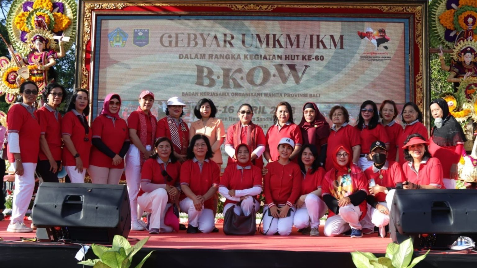 Ket Foto : Ketua Umum BKOW Provinsi Bali Ny. Tjokorda Putri Hariyani Ardana Sukawati foto bersama Ketua GOW Kabupaten Kota saat Gebyar UMKM IKM Dalam Rangka HUT Ke-60 BKOW di Lapangan Timur Bajra Sandhi-Denpasar, pada Sabtu (15/4).