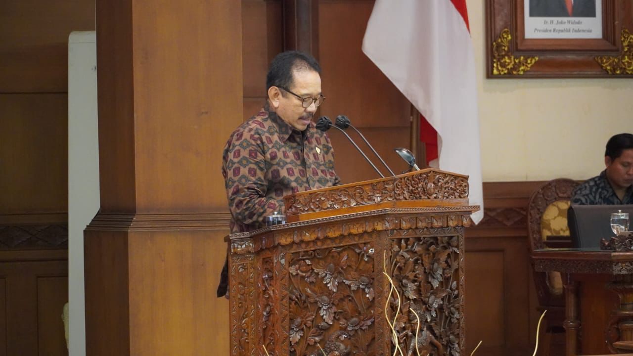 Wakil Gubernur Bali Prof. Tjokorda Oka Artha Ardhana Sukawati (Cok Ace) menyampaikan jawaban Gubernur Bali terhadap pandangan fraksi-fraksi atas RAPERDA Provinsi Bali mengenai Tata Ruang Wilayah Provinsi Bali Tahun 2022-2042 dan Pertanggungjawaban Pelaksanaan Anggaran Pendapatan Dan Belanja Daerah Semesta Berencana Provinsi Bali Tahun Anggaran 2021, di Ruang Sidang Utama, Kantor DPRD Provinsi Bali, Senin (Soma, Umanis, Wuku Pujut) 4 Juli 2022.