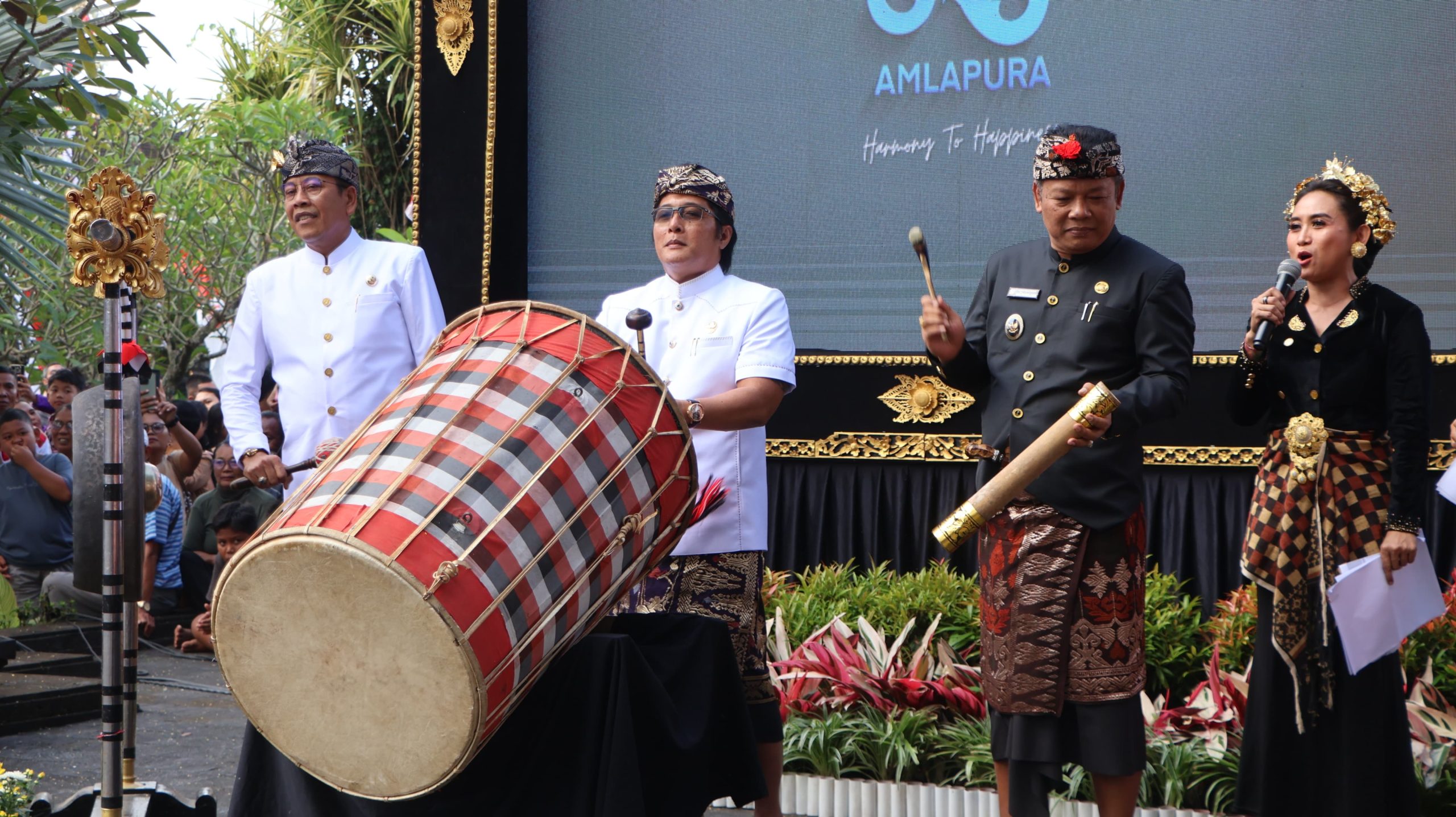 Sementara itu, Bupati Karangasem I Gusti Putu Parwata dalam sambutannya menyampaikan bahwa HUT ke-385 Kota Amlapura sekaligus menjadi penanda 100 hari kepemimpinannya bersama Wakil Bupati Pandu Prapanca. Ia memaparkan sejumlah program prioritas, seperti penanganan infrastruktur pascabencana, pengolahan sampah berbasis energi terbarukan, serta percepatan realisasi hibah dan bantuan sosial.