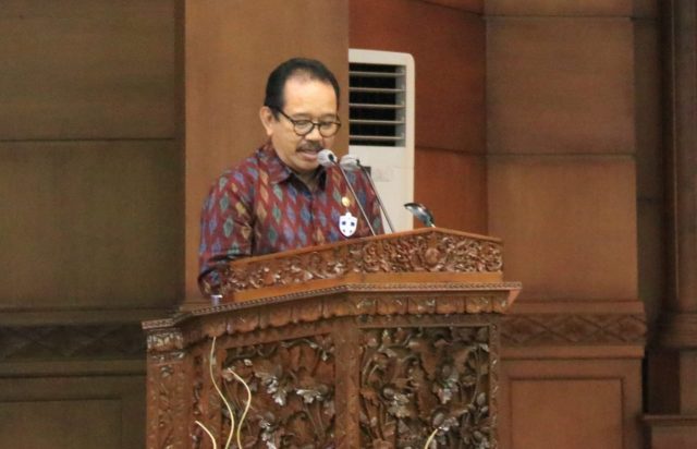 Wakil Gubernur Bali Tjokorda Oka Artha Ardhana Sukawati menyampaikan penjelasan kepala daerah terhadap Raperda Provinsi Bali tentang Perubahan Kedua Atas Peraturan Daerah Nomor 10 Tahun 2016 tentang Pembentukan dan Susunan Perangkat Daerah, di Gedung Sidang Utama DPRD Provinsi Bali, Senin (12/10/2020).