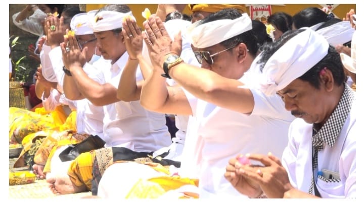 Wakil Ketua DPRD  Badung Wayan Suyasa Ngrastiti Bakti Pujawali di Pura Dalem Sakenan
