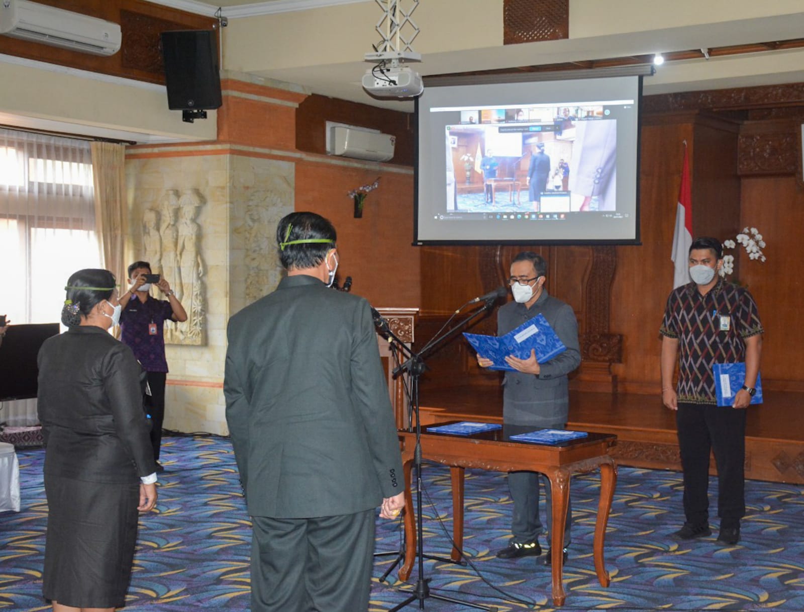 Walikota Denpasar, I Gusti Ngurah Jaya Negara melantik 11 Pejabat Pimpinan Tinggi Pratama Esselon II di Lingkungan Pemkot Denpasar di Ruang Praja Utama Kantor Walikota Denpasar, Jumat (26/11). Pelantikan tersebut serangkaian Rotasi Jabatan untuk mendukung penyegaran OPD di Lingkungan Pemkot Denpasar. Hadir dalam kesempatan tersebut Wakil Walikota Denpasar, I Kadek Agus Arya Wibawa, Ketua DPRD Kota Denpasar, I Gusti Ngurah Gede, para Asisten  serta pimpinan OPD lainnya mengikuti secara virtual
