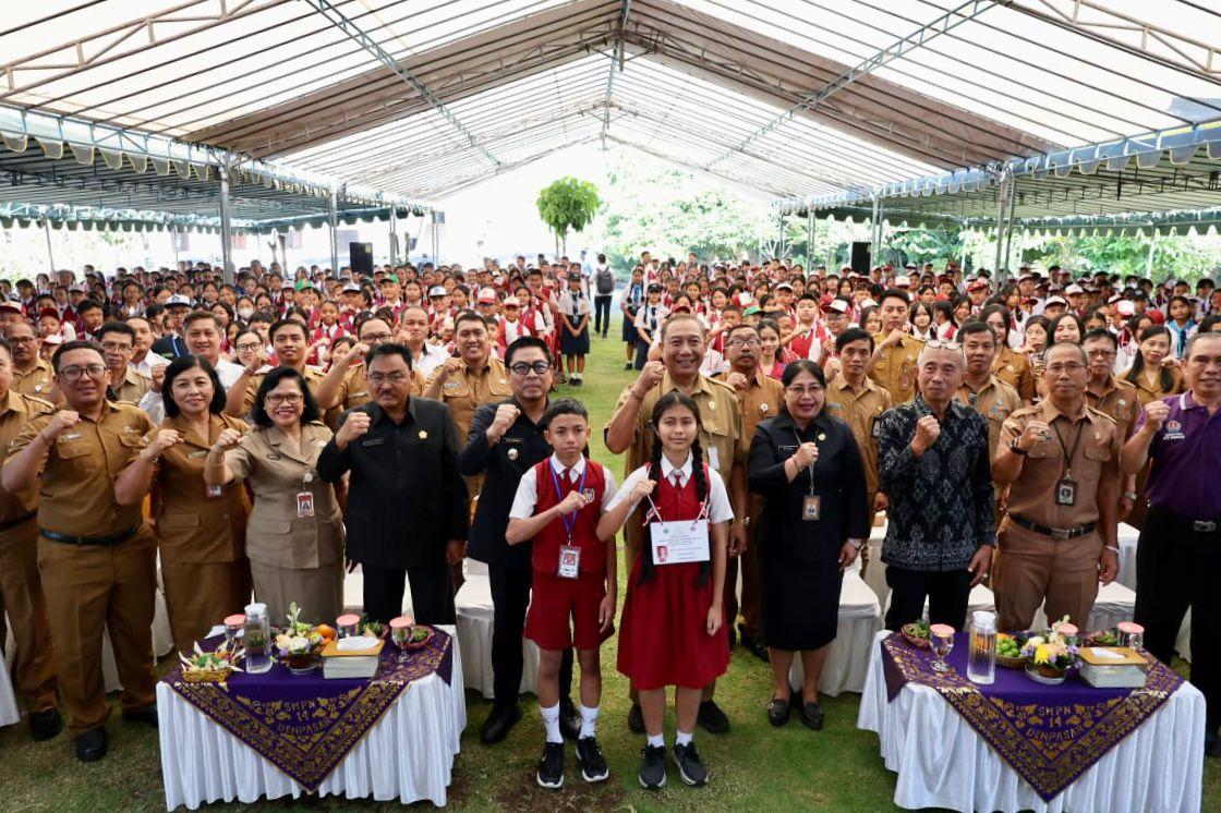 Wakil Walikota Denpasar, I Kadek Agus Arya Wibawa bersama Ketua DPRD Kota Denpasar, I Gusti Ngurah Gede membuka secara resmi pelaksanaan Masa Pengenalan Lingkungan Sekolah (MPLS) jenjang Sekolah Menengah Pertama (SMP), yang dipusatkan di SMPN 14 Denpasar, Senin (21/7).