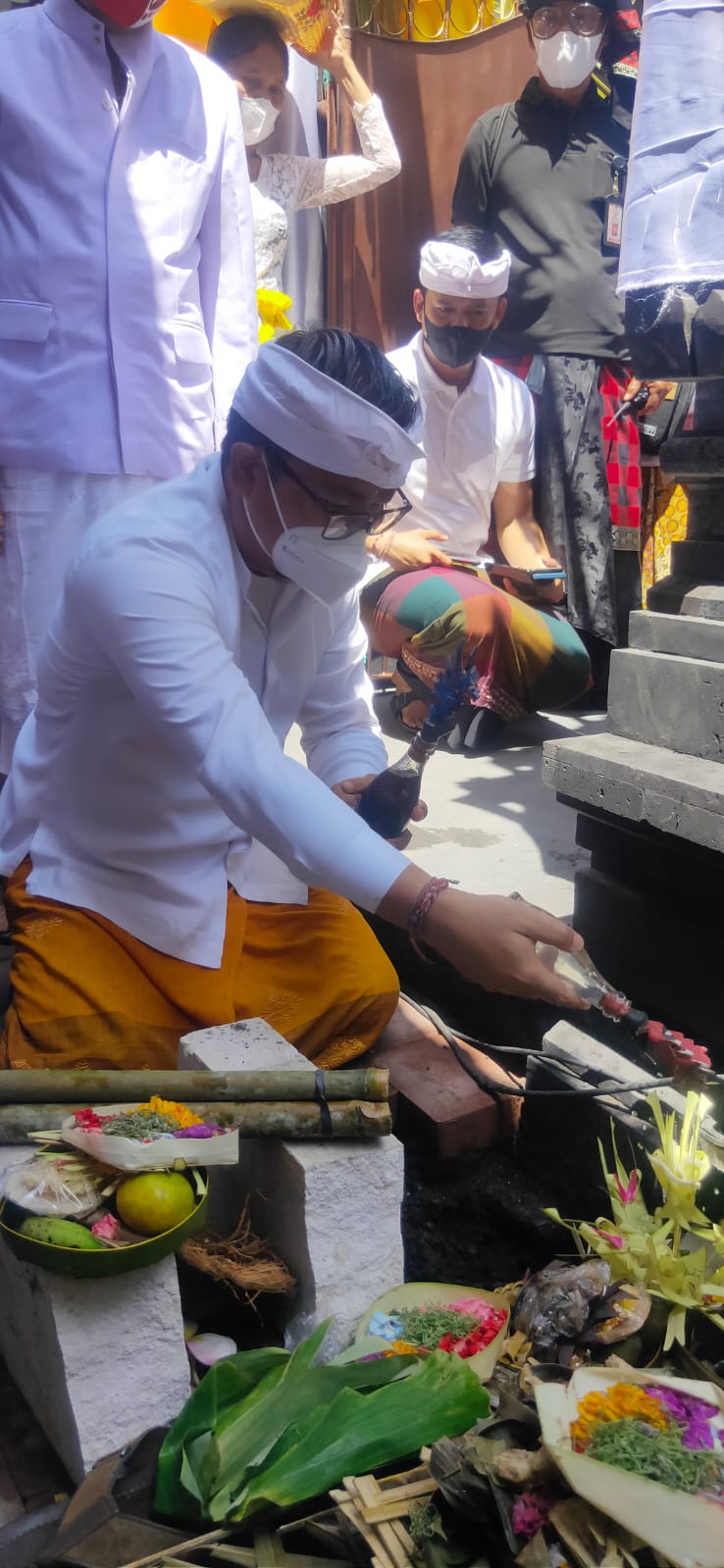 Sebelum melakukan persembahyangan dengan masyarakat setempat, Arya Wibawa  mendem pedagingan di Penyengker Apit Surang. “Setelah masyarakat melaksanakan upacara pemelaspasan ini diharapkan masyarakat dapat  meningkatkan sradha bakti kepada Ida Sang Hyang Widhi Wasa, serta masyarakat semakin meningkatkan solidaritas dan rasa persatuan dan  menyama braya sesuai dengan spirit Kota Denpasar yakni Vasudaiva Kutumbakam,” kata Arya Wibawa.
