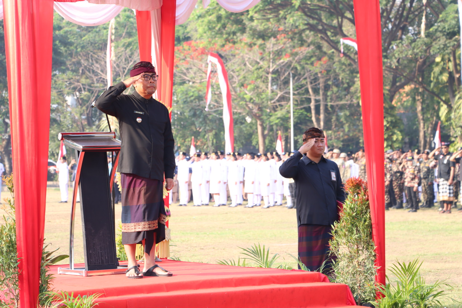 Teks Foto : Wakil Walikota Denpasar I Kadek Agus Arya Wibawa saat pimpin Apel Peringatan Haru Sumpah Pemuda Ke-95 Tahun 2023, Sabtu (28/10) di Lapangan Lumintang.