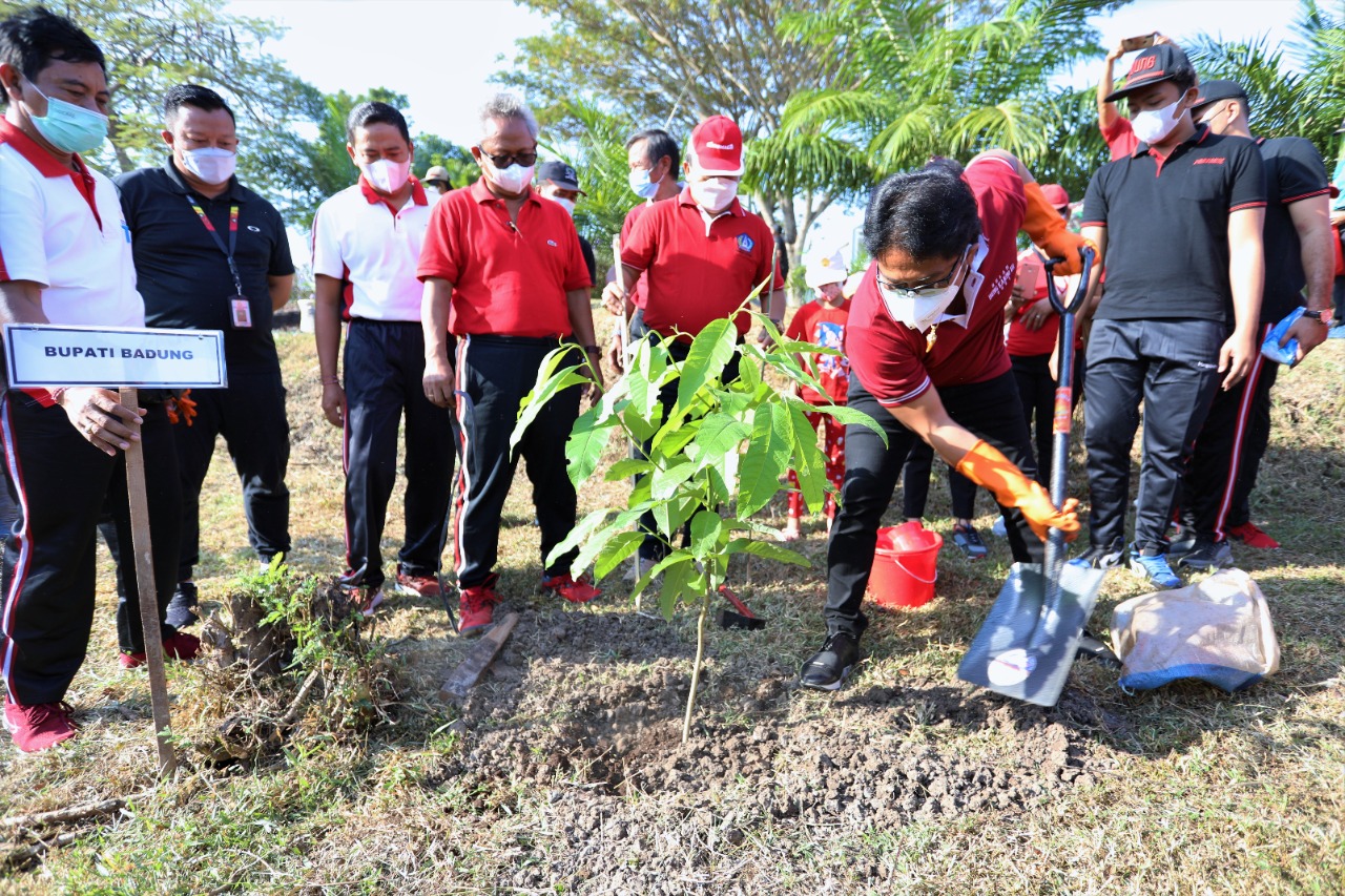 Gerakan serentak penanaman pohon dan aksi kebersihan lingkungan, merupakan bentuk implementasi ajaran Tri Sakti Bung Karno yang meliputi berdaulat secara politik, berdikari secara ekonomi dan berkepribadian dalam kebudayaan, bertujuan untuk mewujudkan keharmonisan alam dan manusia. Demikian disampaikan Bupati Badung Nyoman Giri Prasta saat membuka secara resmi gerakan serentak penanaman pohon dan aksi kebersihan lingkungan, serangkaian bulan bung karno ke-3 tahun 2021 di Kabupaten Badung, bertempat di Green Lot Sembada Munggu, Senin (21/6). Turut hadir mendampingi Bupati Badung, Anggota DPRD Badung Wayan Edi Sanjaya, Sekda Badung Wayan Adi Arnawa, jajaran Forkopimda Badung beserta Kepala OPD terkait dilingkungan Pemkab Badung.